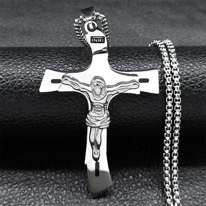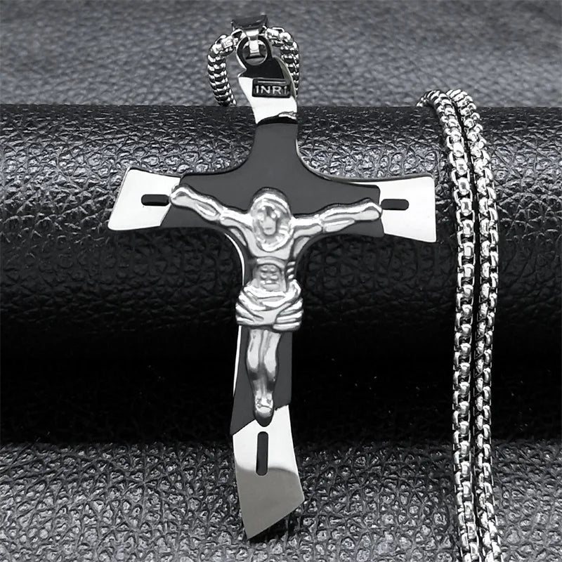 Collier avec pendentif en forme de croix et de Jésus-Christ Crucifié. Plusieurs couleurs de collier disponibles.