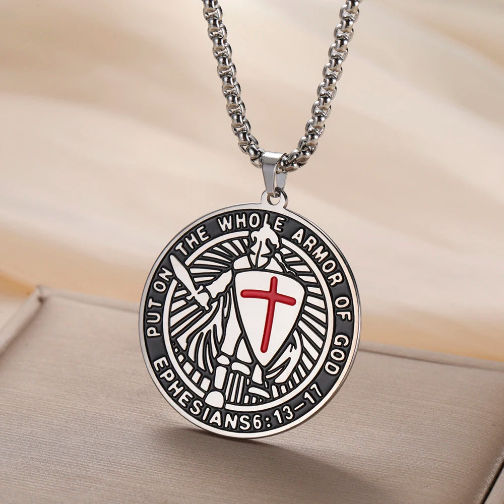 Collier avec un pendentif dun chevalier Templier. Deux couleurs de collier disponibles.